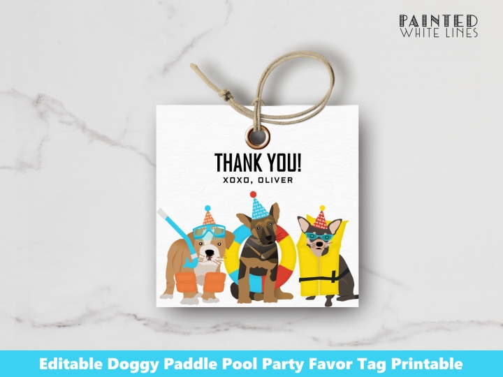 Doggy Paddle Pool Party Editable Favor Tags Template