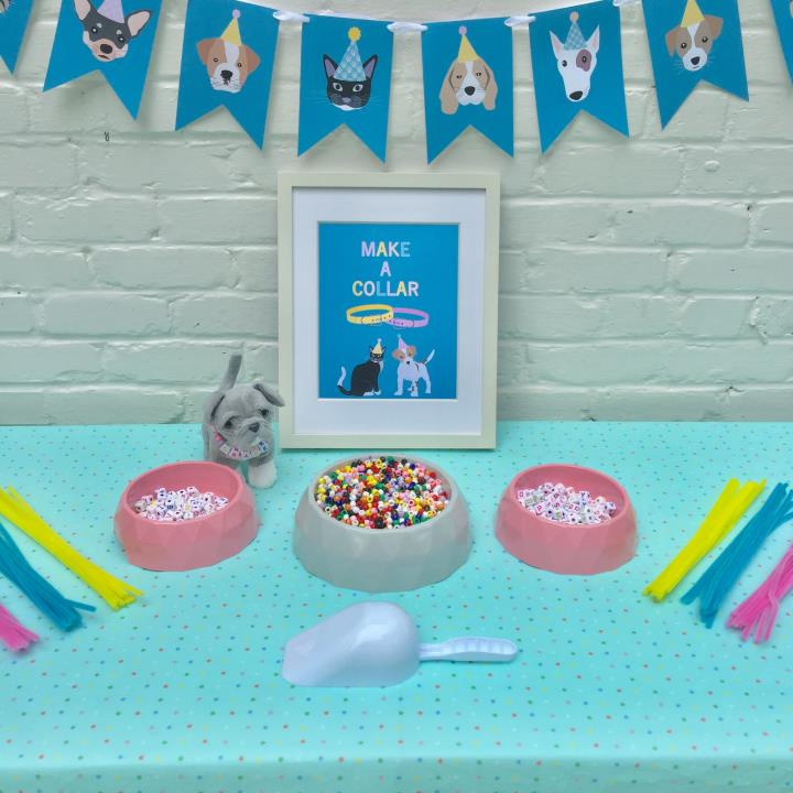 Set up a "Make a Collar" station using our Make a Collar Activity Printables along with colorful pipe cleaner and beads. Lettered beads work great because it allows the child to give their pet a name and make a personalized collar for their pet.