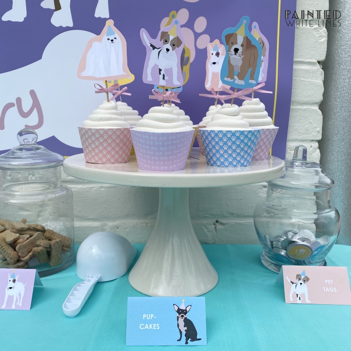 I have printables for a puppy cupcake baking/decorating theme party, a paint party, as well as a puppy adoption theme party - where you purchase a stuffed puppy for each child as a party favor and let them "adopt" the puppy.